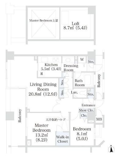 | 間取り | 2LDK+WIC+ロフト | 専有面積 | 71.42m2 |