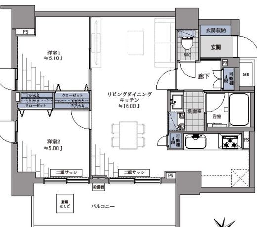 間取り | 2LDK | 専有面積 | 58.86m2 |