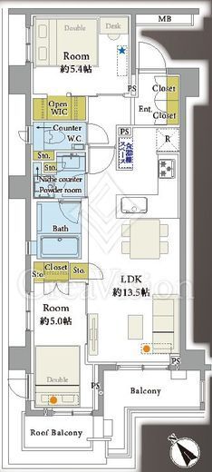 | 間取り | 2LDK+WIC | 面積 | 54.28m2 |