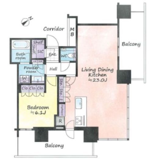 | 間取り | 1LDK+SIC | 専有面積 | 65.53m2 |