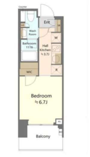| 間取り | 1K+WIC | 専有面積 | 25.05m2 |