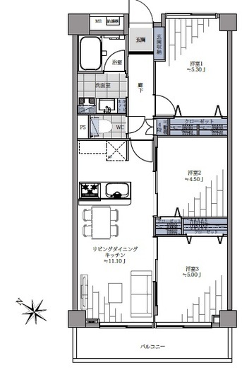 | 間取り | 3LDK | 専有面積 | 58.86m2 |