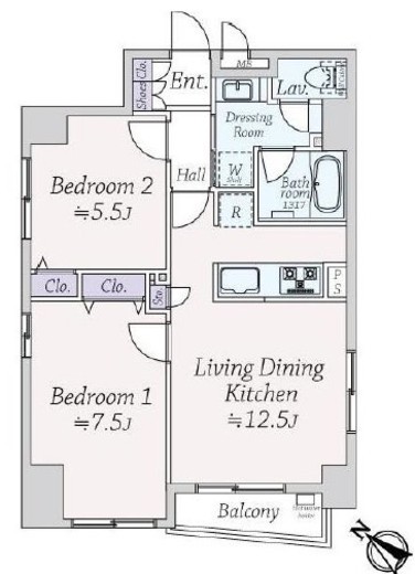 | 間取り | 2LDK | 専有面積 | 56.98m2 |