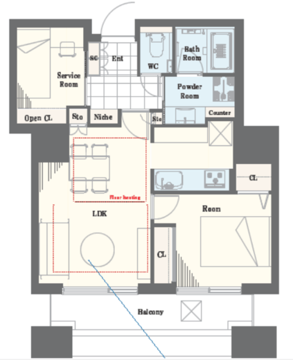 | 間取り | 1SLDK | 面積 | 53.7m2 |