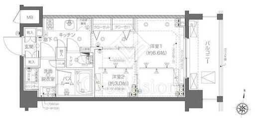 | 間取り | 2K | 専有面積 | 30.42m2 |