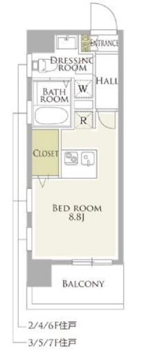 | 間取り | 1R | 専有面積 | 25.77m2 |