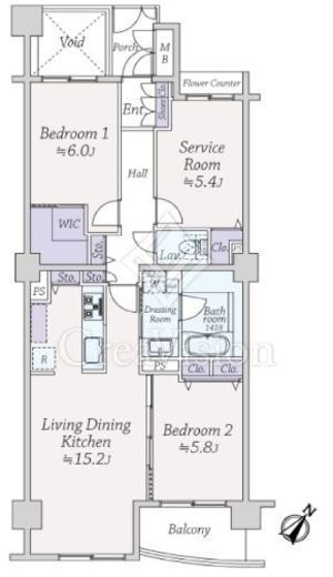 | 方角 | 南東 | バルコニー面積 | 4.75m2 |