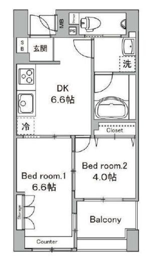 間取り | 2DK | 専有面積 | 40.04m2 |