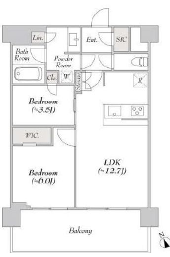 | 間取り | 2LDK+WIC+SIC | 専有面積 | 52.29m2 |