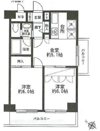| 間取り | 2DK | 専有面積 | 44.27m2 |