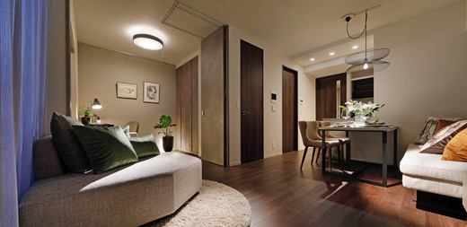 物件は地上13階建て、総戸数36戸。外観は緑豊かな地に調和に調和するモダンでありながら上質なデザイン。落ち着きのあるエントランスホールの先には四季の自然を感じられるエントランスコートが広がります。間取りは2LDK住戸、室内には日々の暮らしに彩りと快適をもたらす床暖房や浄水器など機能性の高い設備ラインナップが揃います。
