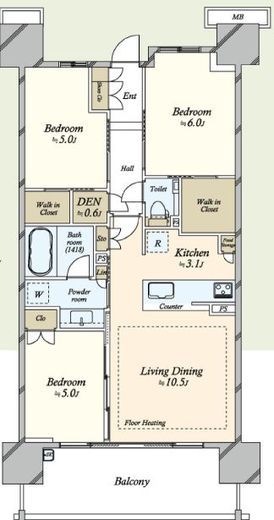 | 間取り | 3LDK+WIC | 専有面積 | 67.2m2 |