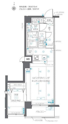 間取り | 1LDK | 専有面積 | 35.61m2 |