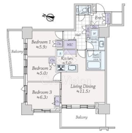 | 間取り | 3LDK+WIC | 面積 | 74.72m2 |