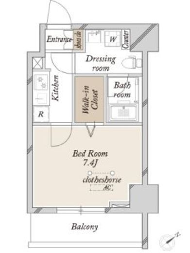| 間取り | 1K+WIC | 専有面積 | 25.6m2 |