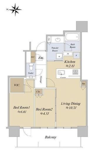 | 間取り | 2LDK+WIC+SIC | 専有面積 | 55.99m2 |