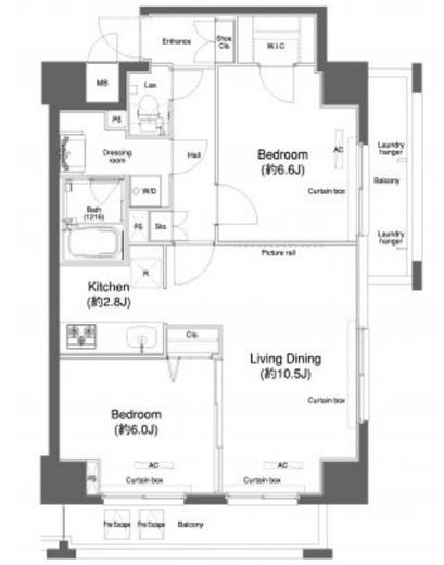 | 間取り | 2LDK+WIC | 専有面積 | 58.46m2 |