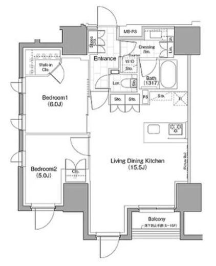 | 間取り | 2LDK+WIC | 専有面積 | 61.26m2 |