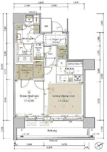 間取り 1LDK+WIC+SIC 専有面積 54.45m2