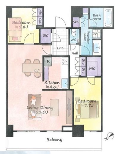 間取り 2LDK+WIC+SIC 専有面積 88.89m2