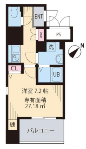| 間取り | 1K | 専有面積 | 27.18m2 |