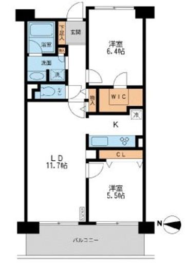 間取り | 2LDK+WIC | 専有面積 | 62.14m2 |