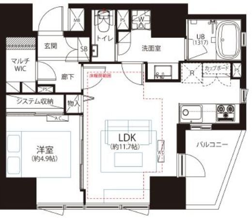| 間取り | 1LDK+WIC | 面積 | 44.23m2 |