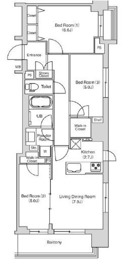 間取り | 3LDK | 専有面積 | 66.6m2 |