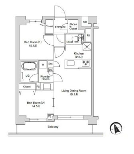 | 間取り | 2LDK | 専有面積 | 50.55m2 |