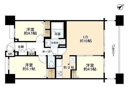 | 間取り | 3LDK | 専有面積 | 61.66m2 |