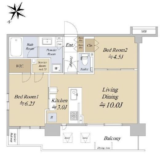 間取り | 2LDK+WIC | 専有面積 | 54.58m2 |
