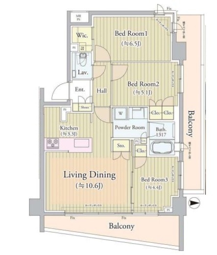 | 間取り | 3LDK+WIC | 専有面積 | 66.22m2 |