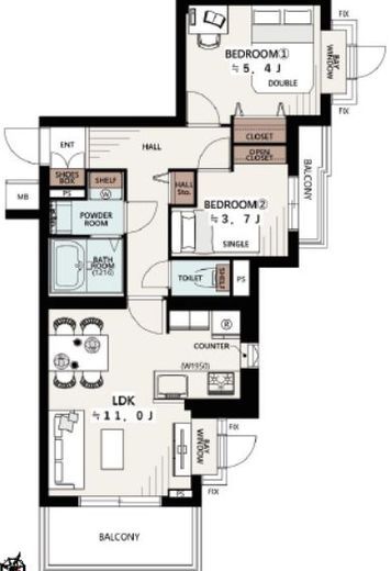 間取り | 2LDK | 専有面積 | 50.65m2 |