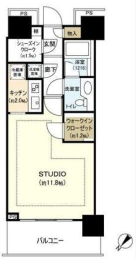 | 間取り | 1K+WIC+SIC | 専有面積 | 36.77m2 |
