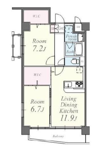 間取り | 2LDK+WIC | 専有面積 | 62.1m2 |