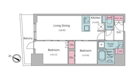 | 間取り | 2LDK | 専有面積 | 45.5m2 |