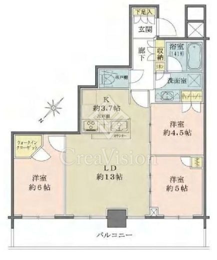 | 方角 | 北西 | バルコニー面積 | 14.86m2 |