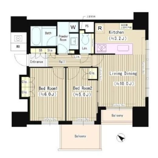 間取り | 2LDK | 専有面積 | 56.06m2 |