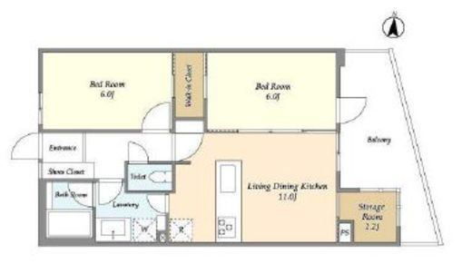 | 間取り | 2SLDK+WIC | 専有面積 | 58.69m2 |