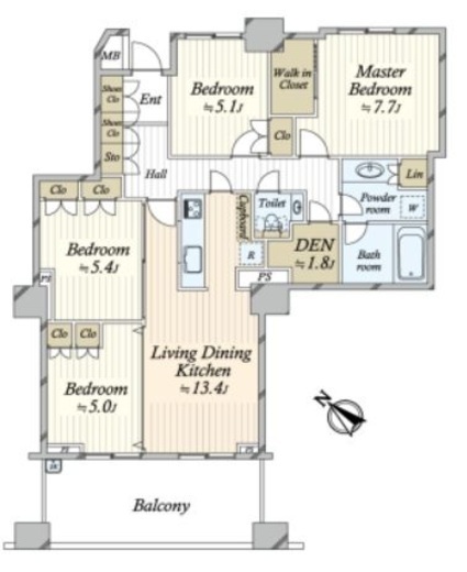 間取り | 4SLDK+WIC | 専有面積 | 93.12m2 |