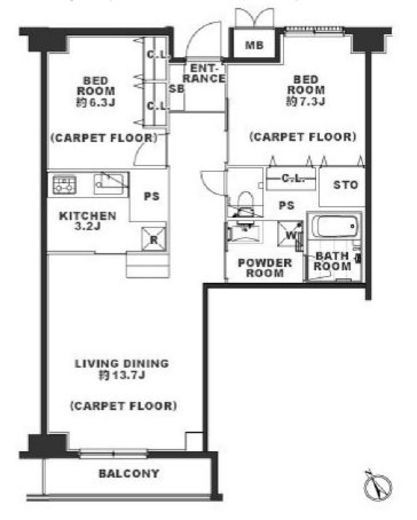 | 間取り | 2LDK | 専有面積 | 72.77m2 |
