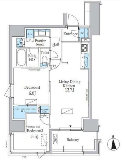 | 間取り | 2LDK+WIC+SIC | 専有面積 | 60.08m2 |