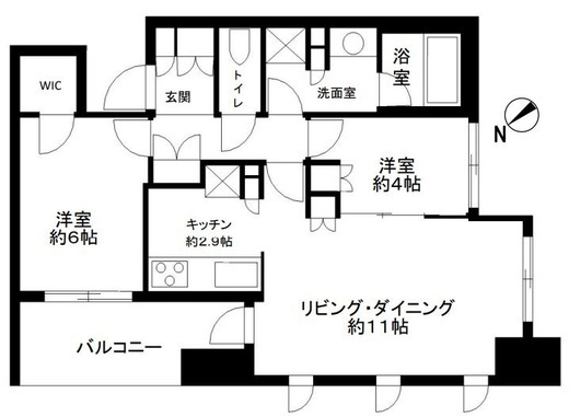 | 間取り | 2LDK+WIC | 専有面積 | 56.41m2 |