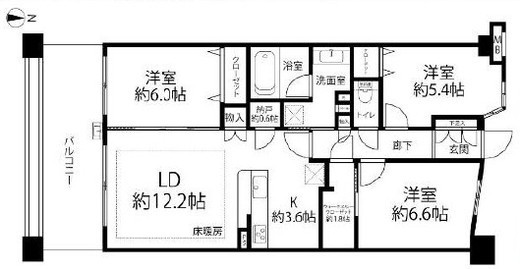 | 方角 | 南 | バルコニー面積 | 12.8m2 |