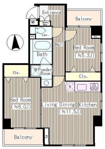 間取り | 2LDK | 専有面積 | 53.85m2 |