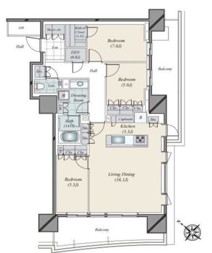 | 間取り | 3LDK+WIC | 専有面積 | 92.19m2 |