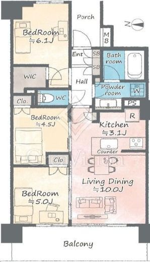 | 間取り | 3LDK+WIC | 面積 | 63.04m2 |