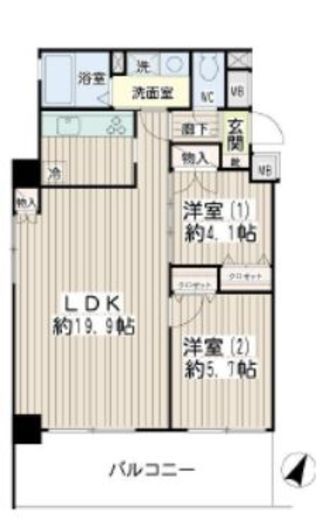 間取り | 2LDK | 専有面積 | 61.79m2 |