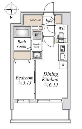 | 間取り | 1DK | 専有面積 | 25.36m2 |