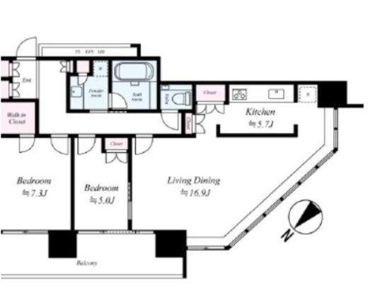 部屋1 LDK22.6帖 部屋2 洋室7.3帖
